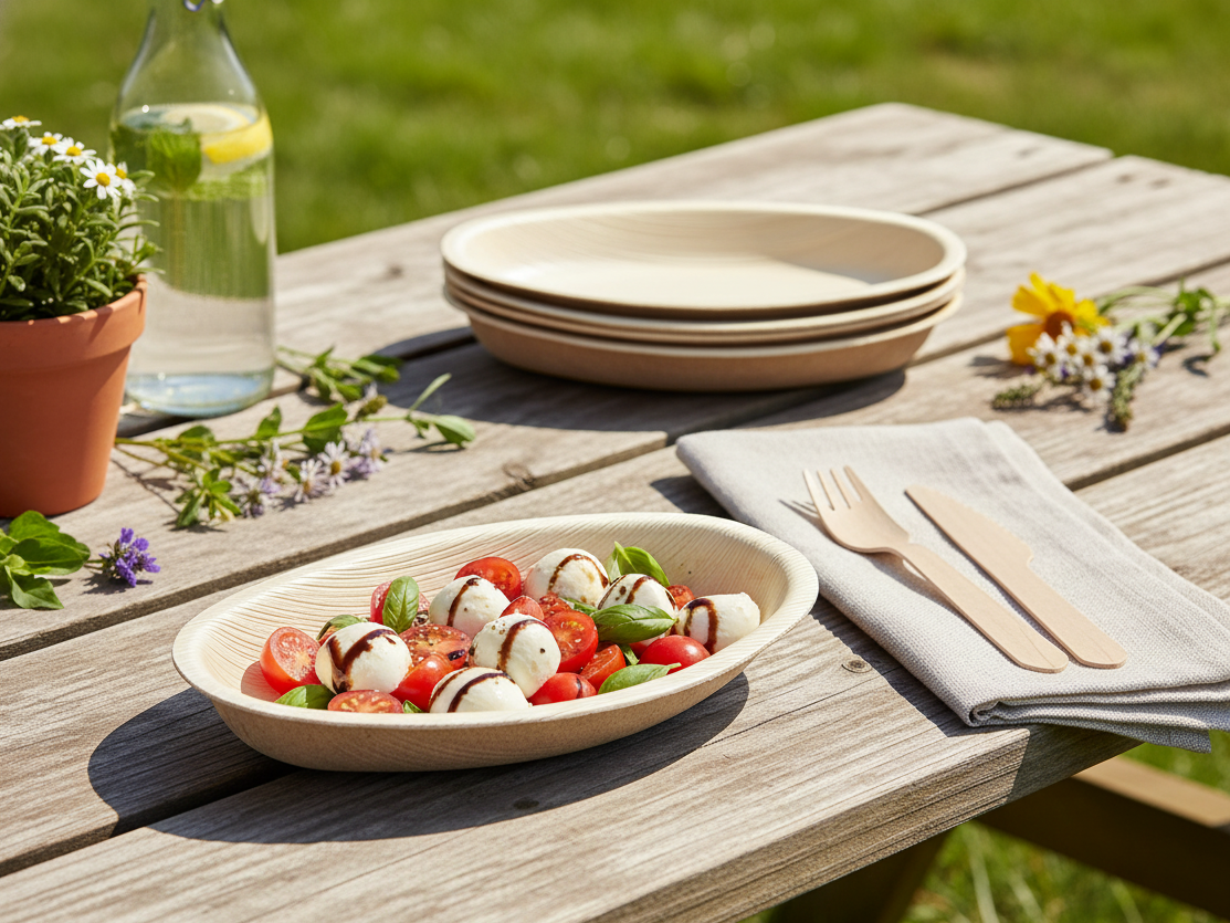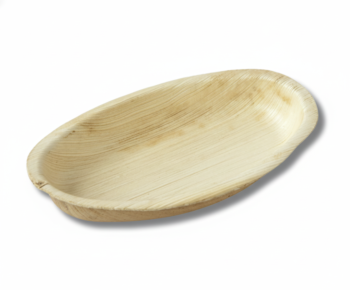 Made from heat-pressed palm leaves, this oval bowl is perfect for salads, snacks, or dry fruits.